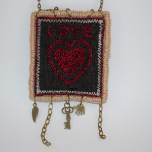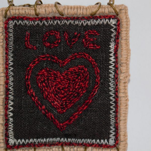 Colier brodat pe etamina cu intaritura. Broderia este de culoare grena.
