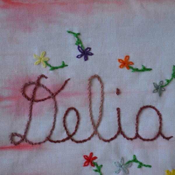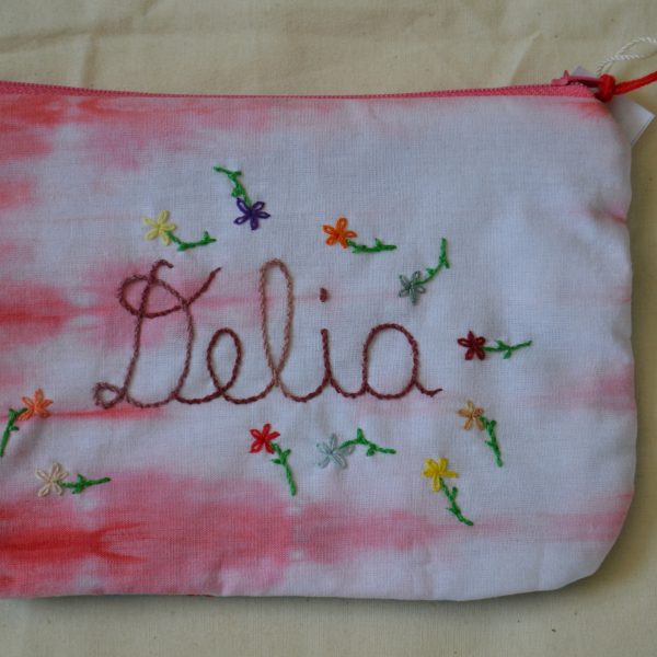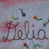 Organizator brodat manual cu numele Delia, din bumbac dublat cu vatelina.