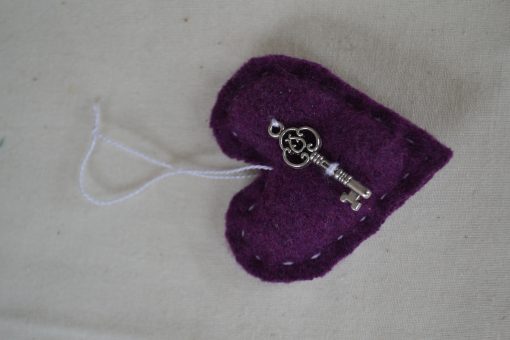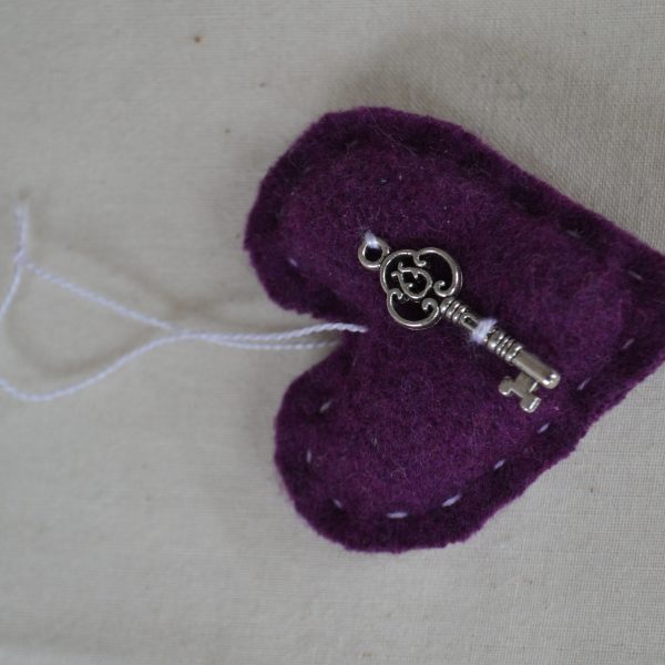 Decorațiune inimioară, din fetru, culoare mov, 5 cm.