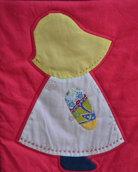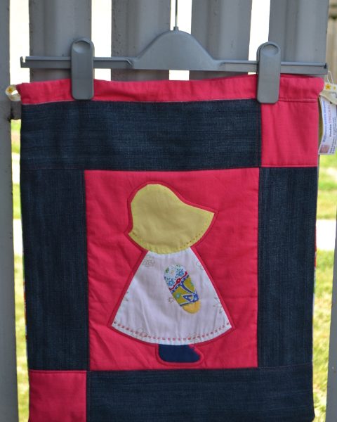 Sac pentru gradinita, potrivit pentru hainute. Cu aplicatie manuala, dublat, strangere cu banda textila. Unicat.